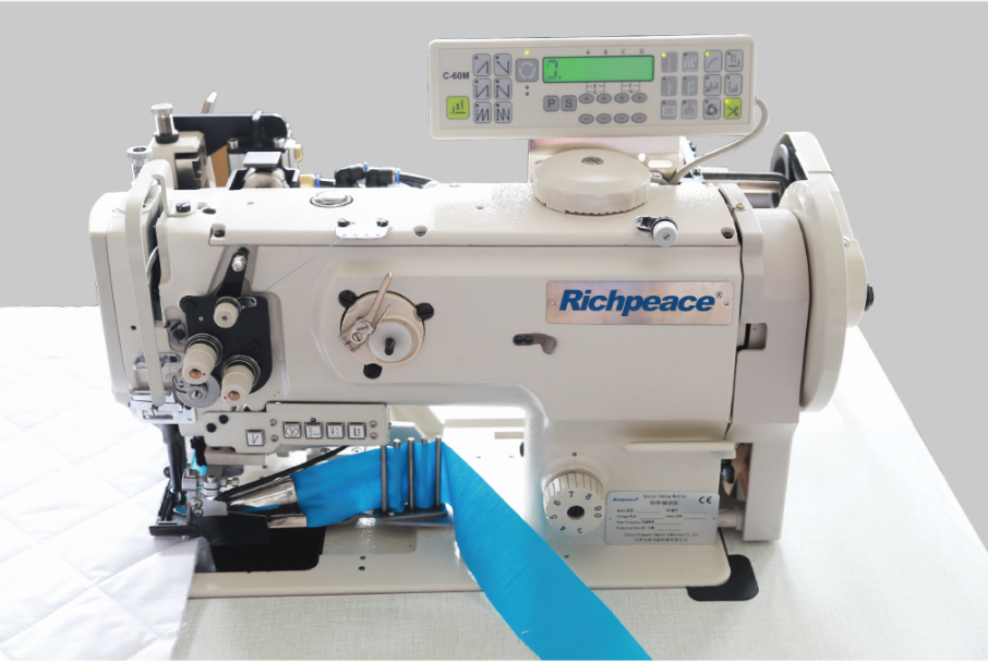 1、 單針綜合送布,左旋梭式特殊機(jī)型,側(cè)切刀可開(kāi)/關(guān),應(yīng)用于帶襯墊的內(nèi)裝潢部件無(wú)移位的縫紉并且準(zhǔn)確修齊邊沿。