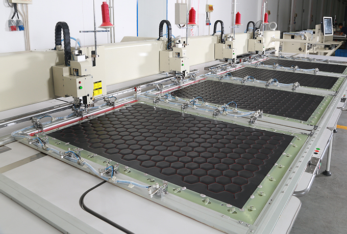 11、自動(dòng)縫框:三面固定,自動(dòng)夾緊,保證縫紉過程中平穩(wěn)無皺,走位準(zhǔn)確。