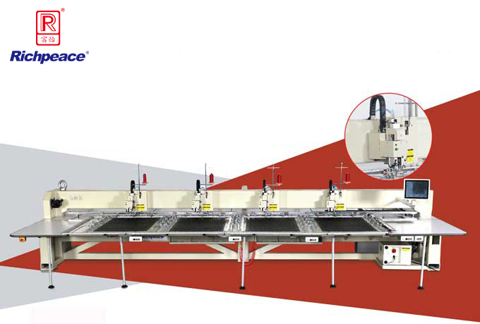2、四個(gè)機(jī)頭同時(shí)工作,縫紉效率是普通機(jī)器的四倍,批量化高效生產(chǎn);