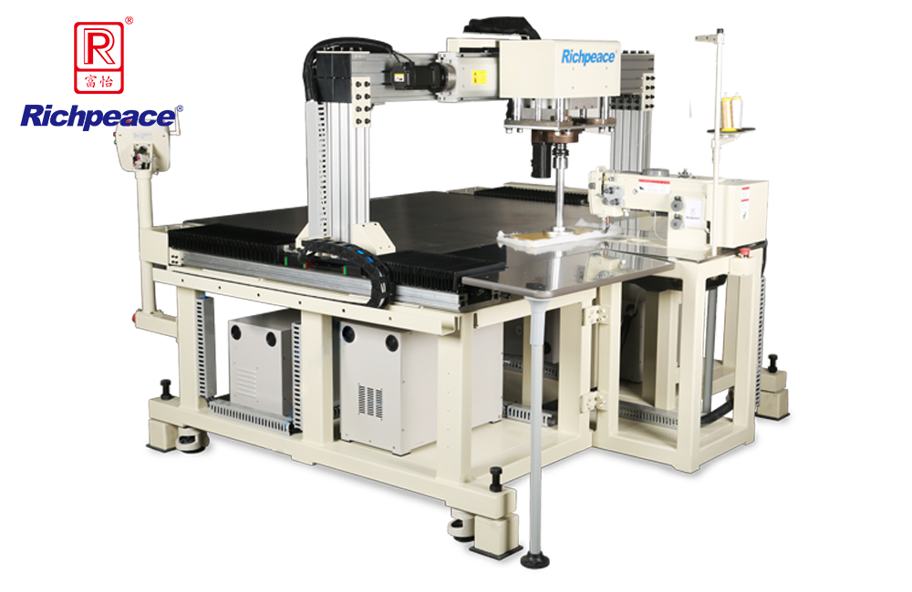 • 設(shè)備自動(dòng)拾取縫料進(jìn)行縫紉,縫紉結(jié)束后自動(dòng)將縫料送出工作區(qū);